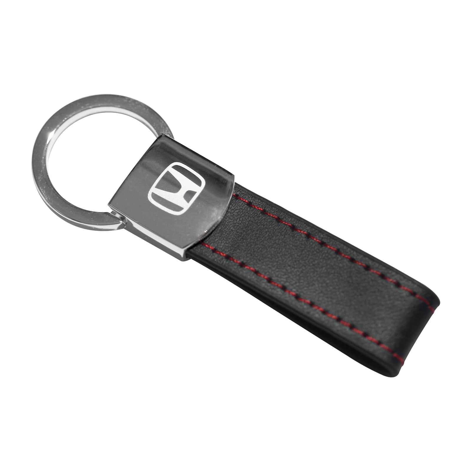 The keychain made of chrome metal and leather, adorned with red stitching, presents a sleek and contemporary accessory that embodies a bold aesthetic. Constructed from premium materials, it features a robust chrome metal frame that delivers a brilliant shine. The soft leather body contributes an element of sophistication, while the vivid red stitching provides a striking contrast that enhances the overall appearance. With dimensions of approximately 4 inches in length and 3 inches in width, this spacious key ring is designed to accommodate a set of keys or other small items, ensuring they remain organized and readily accessible. Its durable design guarantees longevity, making it a stylish and practical option for those who value both elegance and utility.